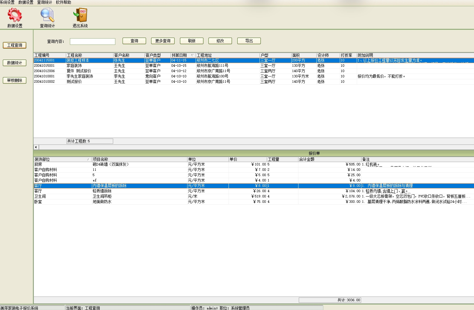 装修电子报价管理软件功能特点: