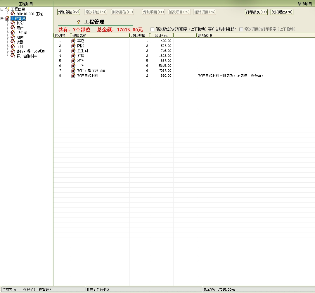 第八:家装公装装修电子报价软件具有工程管理:在工程管理中设计师可以根据客户的需要进行报价、打印报价单。