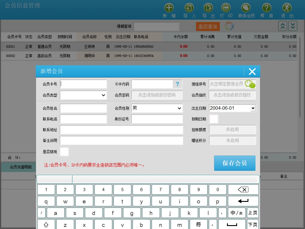 8、会员卡支持磁条卡、ID卡和IC卡。