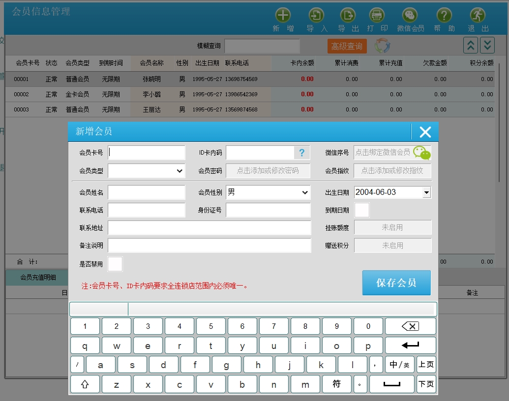 8、会员卡支持磁条卡、ID卡和IC卡。