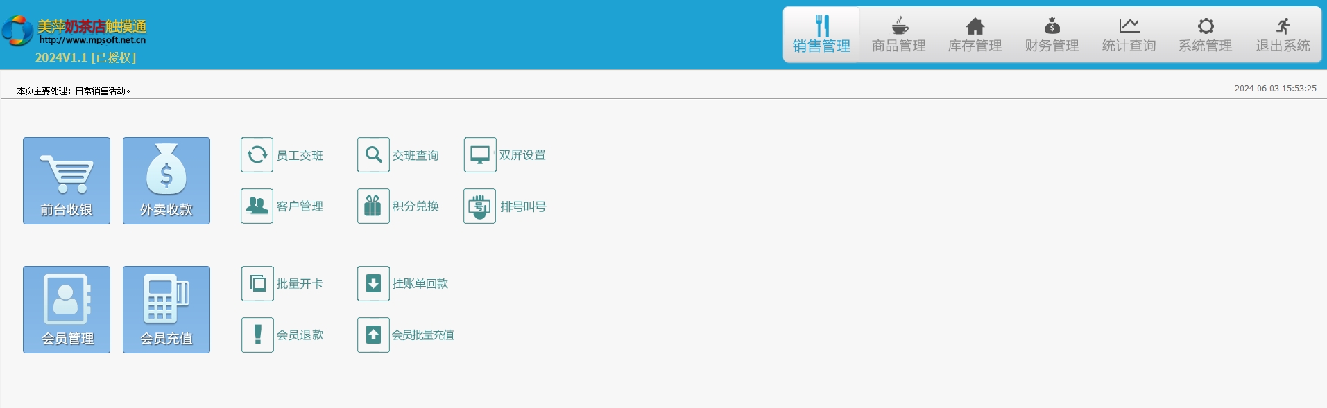 搜索关键词:美萍奶茶店触摸通(同旺店)软件,奶茶店收银软件,奶茶店收费软件,奶茶店前台软件,奶茶店会员软件,美萍官方正版软件