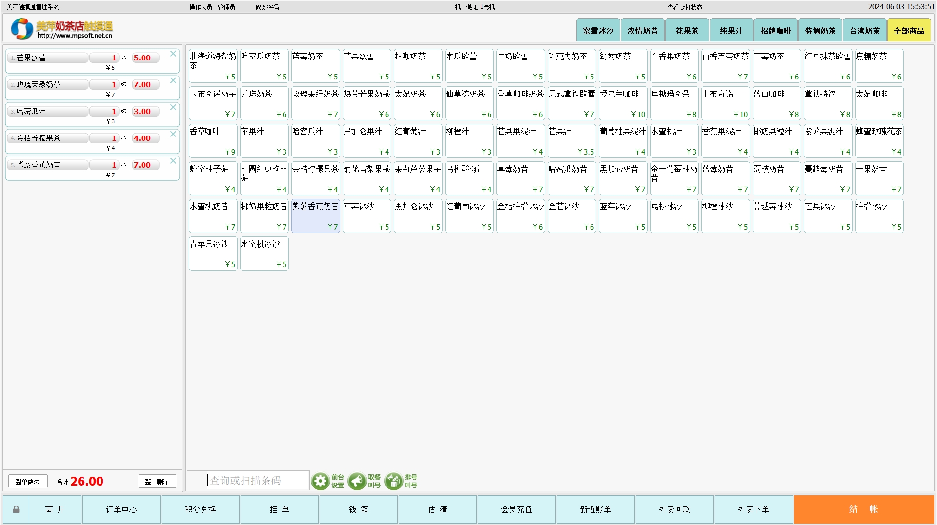 奶茶店触摸通(同旺店)软件的使用方法: