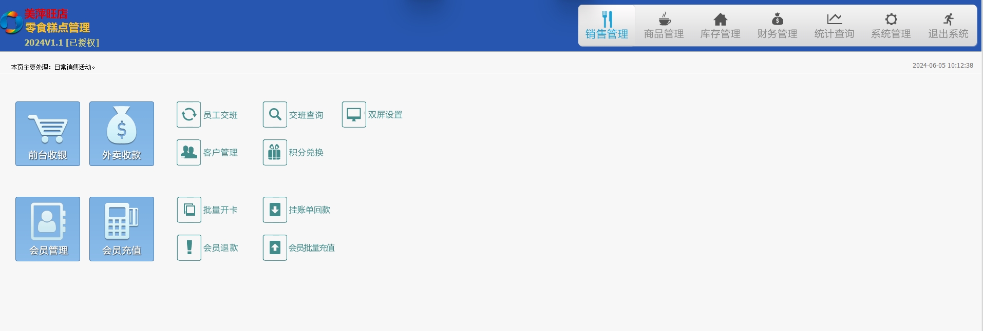 搜索关键词:美萍零食糕点触摸通(同旺店)软件,零食糕点店收银软件,零食糕点店收费软件,零食糕点店前台软件,零食糕点店会员软件,美萍官方正版软件
