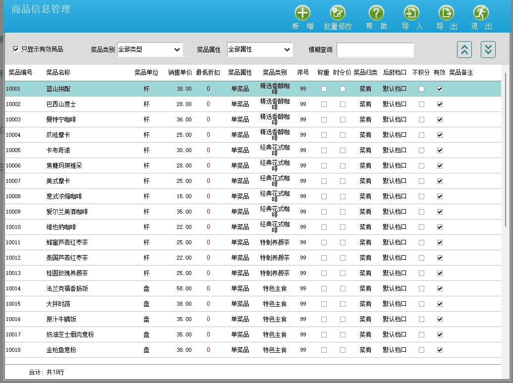 第十一、旺店(同触摸通)咖啡厅软件支持强大的商品管理功能,商品分为单菜品、商品、原料和套餐4类。