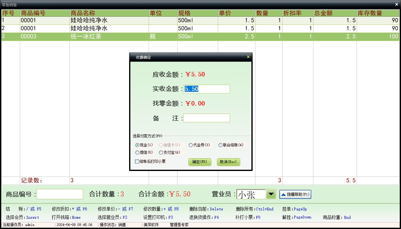 2、外卖消费:在前台窗口选择商品并使用外卖暂结即可完成。