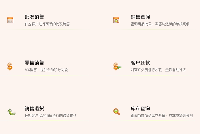 第一:旺店-店铺(又叫店铺通)软件具有业务管理:进行商品批发业务、零售业务(POS前台业务)、业务退货,及业务查询、客户还款、库存查询操作。
