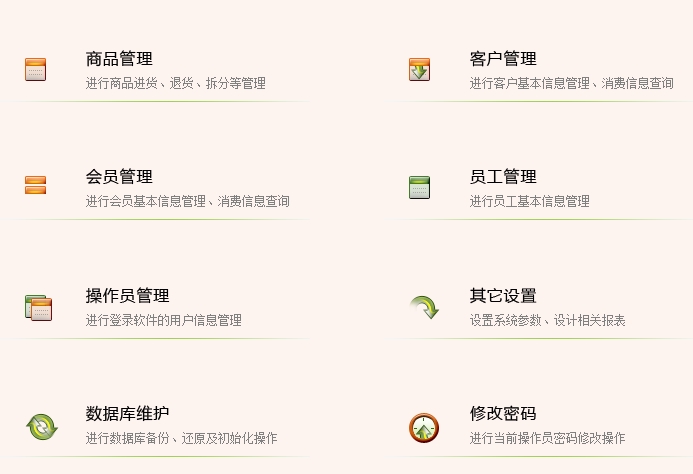 第一:旺店-服装(又叫服装通)软件具有业务管理:进行商品批发业务、零售业务(POS前台业务)、业务退货,及业务查询、客户还款、库存查询操作。