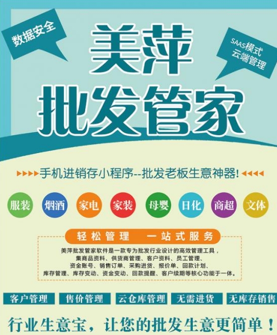 广泛适用于多种批发行业,包括但不限于:烟酒食品、家电家具、服装箱包、家装建材、母婴玩具、日化用品、文体图书、汽配汽修、商超零售等。