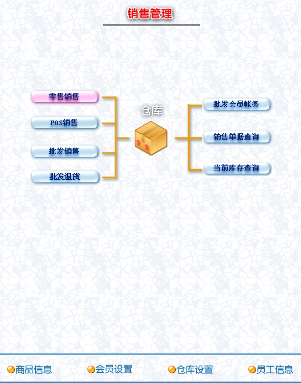 第一:会员销售软件支持会员销售批发业务,零售业务,提供POS端业务管理,进行商品业务(批发,零售),顾客退货,销/退单据,当前库存查询,前台业务查询,与客户的往来帐务。