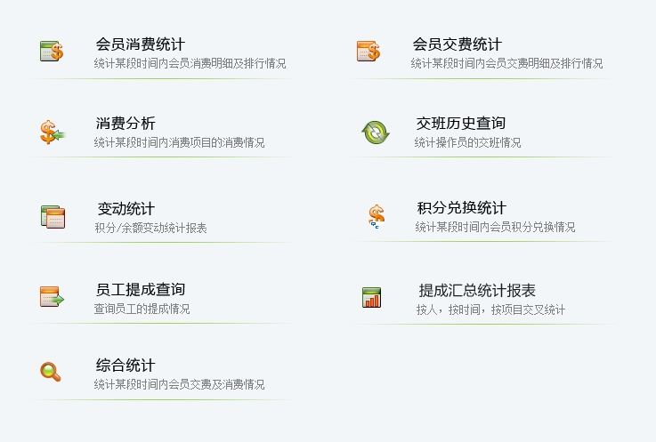 第十:美甲软件在统计报表中可以查询统计出会员消费情况、营业情况、会籍顾问的业绩、兑换商品的记录和会员来访情况。