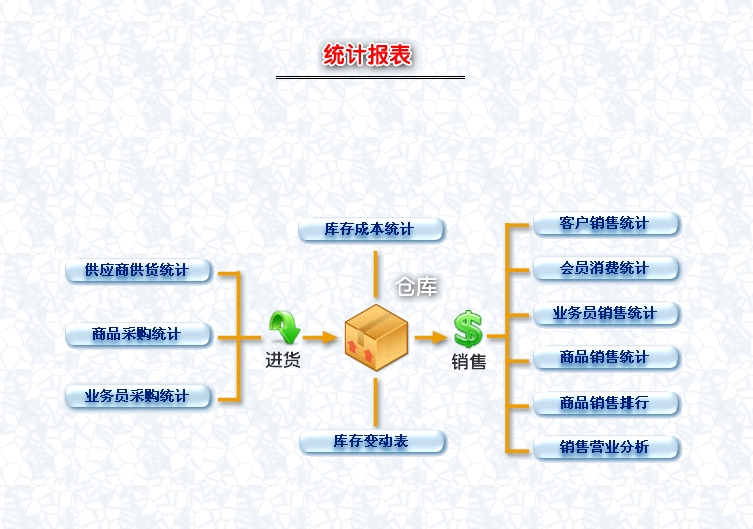 第七:鞋店销售软件独创关联数据模式,让所有查询都简单方便,完整的统计查询功能,每张单据每次收款付款都可以清楚的反映。