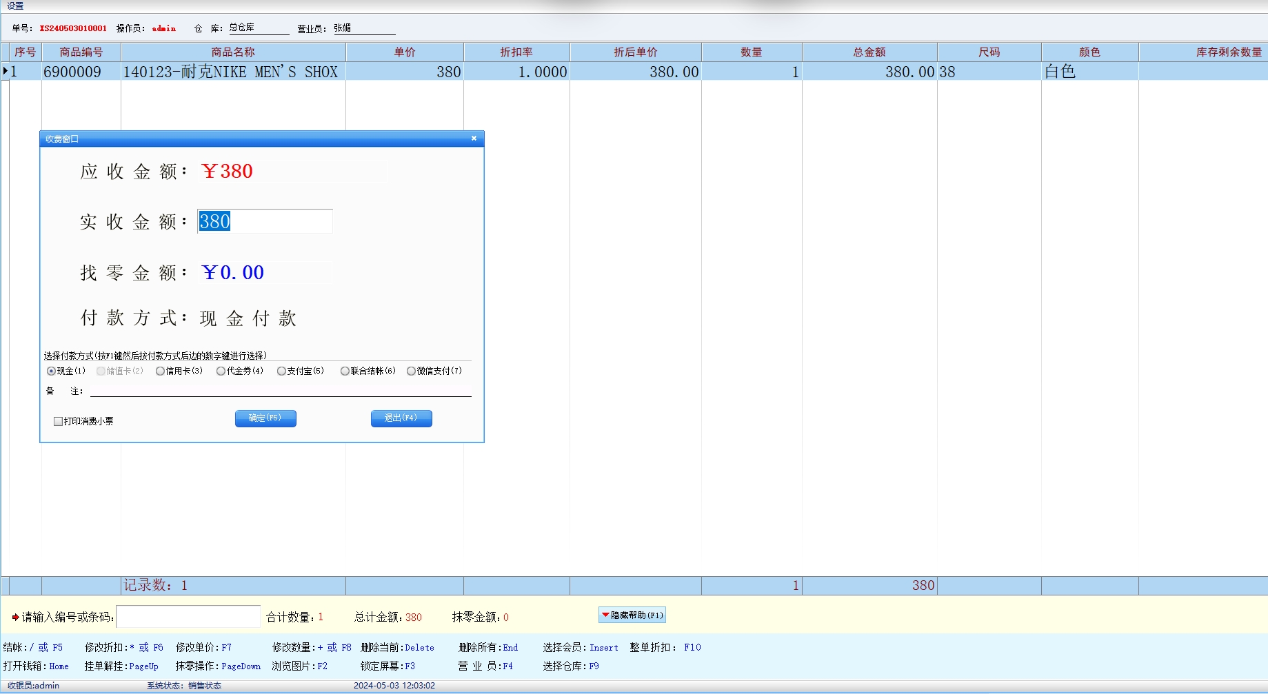 第十一:鞋店销售软件支持多种结帐方式:现金、储值卡、代金券、信用卡。