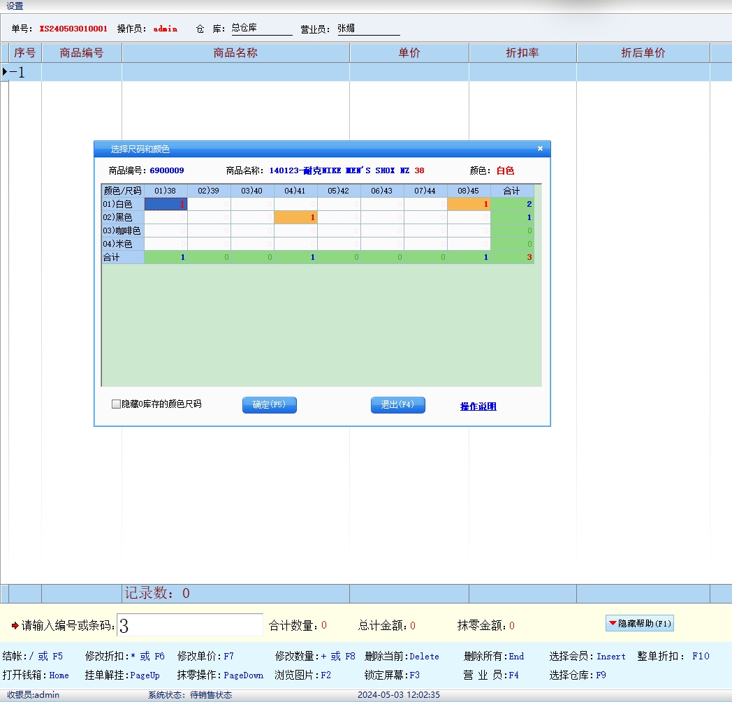 第八:鞋店销售软件提供颜色以及尺码管理,支持自定义颜色组和尺码组。