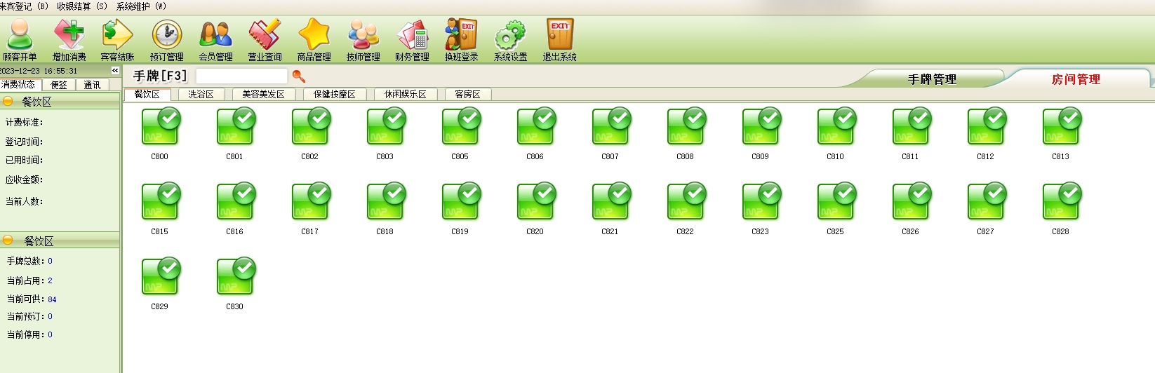 第二:休闲会所软件包间项目:包间项目也可以理解为包间的种类(例如可分为洗浴区、餐饮区、保健按摩区包间等)。包间项目只能做为消费项目添加到某个已开单的手牌中。