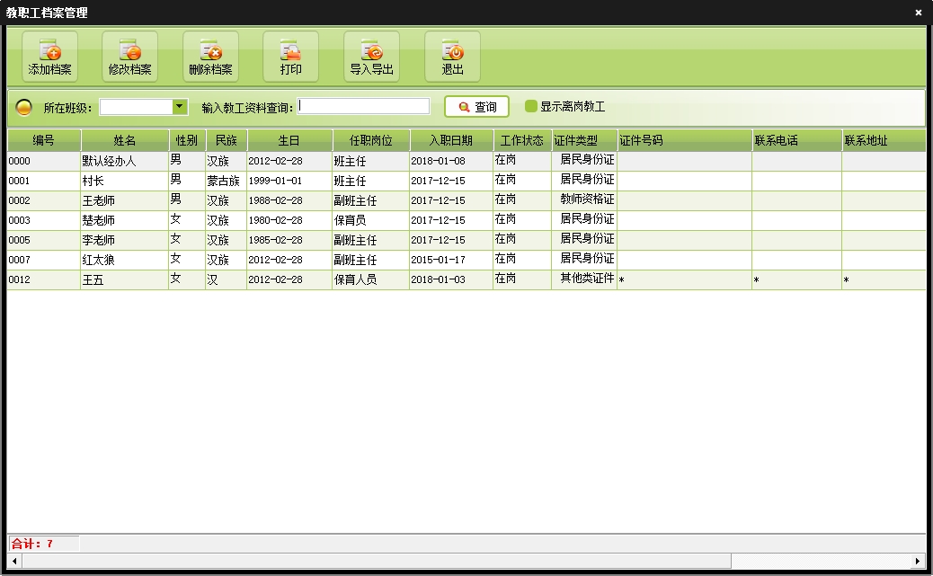 第九:幼儿园软件可为员工分配相应的角色(可操作的权限),相应的操作员登录本系统时只能对属于自己权限范围内的功能进行操作。做到管理工作的安全顺利的进行。