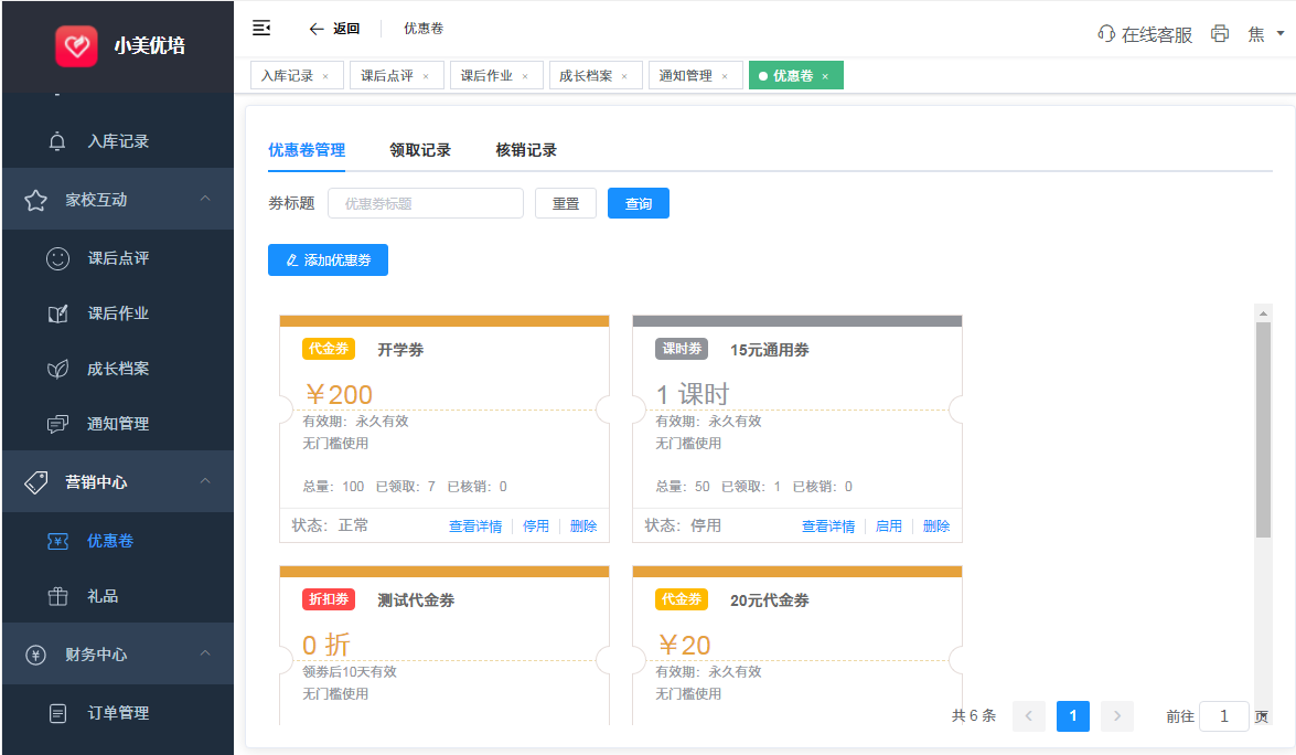 5.营销活动(礼品、优惠券管理)