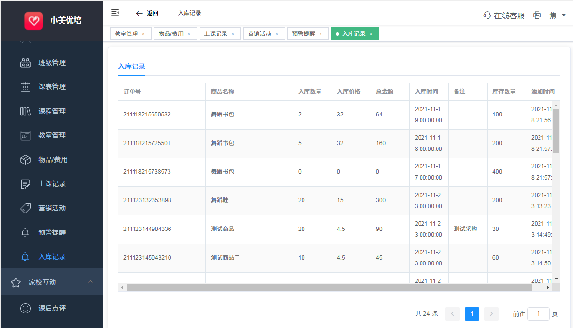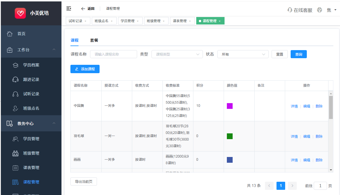 2.课程管理(添加、修改、删除、收费标准、一对一、一对多定义)