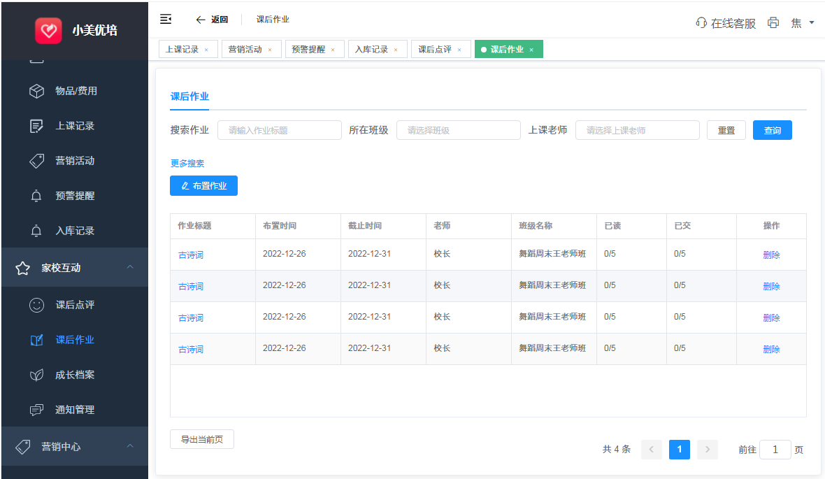 7.课后作业管理(作业按班级、按学员发放)