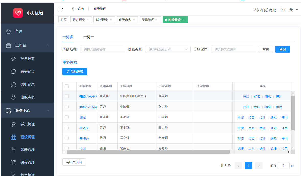 1.班级管理(添加、修改、停用、排课)