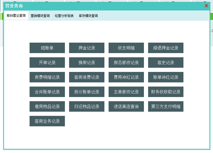 第四:民宿客栈收银软件处理宾客入住、消费、结账离店的业务。同时也提供其他模块的功能入口。