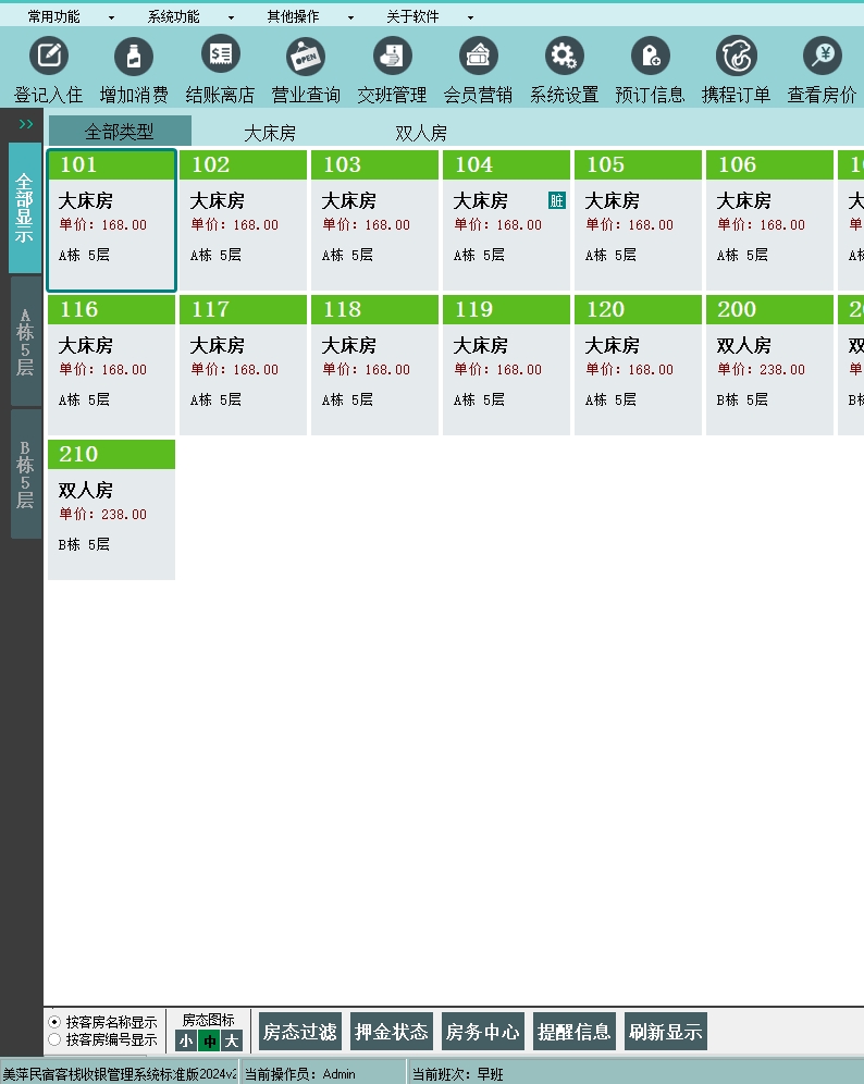 美萍民宿客栈收银管理系统(软件)的主要功能: