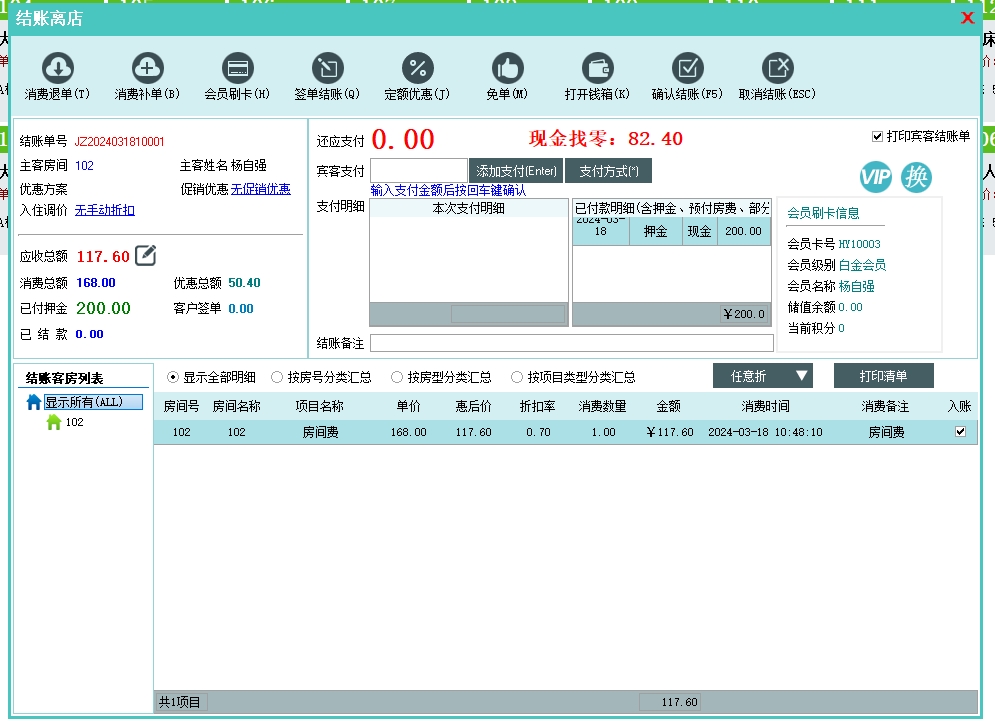 第六:民宿客栈收银软件支持多种结帐方式:现金、储值卡、代金券、信用卡、支付宝、微信、银行卡等。