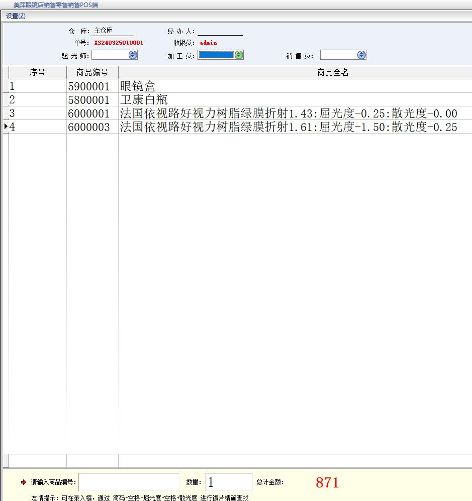 第三:眼镜店软件可以进行商品销售,顾客退货,销/退单据和当前库存查询,POS 销售统计,与客户的往来帐务理。