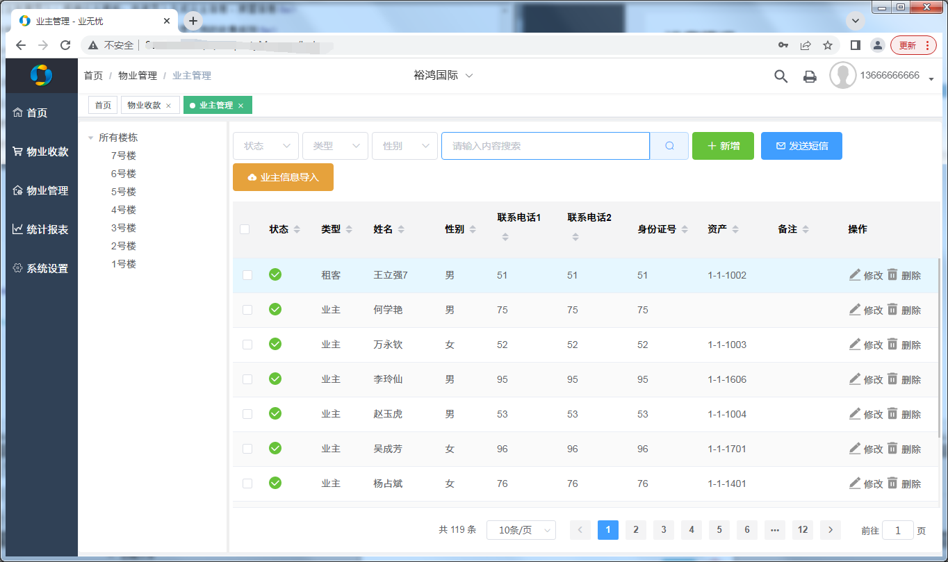 第四:业无忧软件的物业收款(可根据门牌号、业主姓名、手机号快速查找到业主下的所有房屋及欠费信息)。