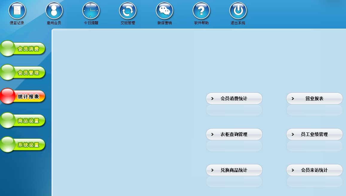 第十一:健身房软件可以在统计报表中可以查询统计出会员消费情况、营业情况、衣柜出租情况、会籍顾问的业绩、兑换商品的记录和会员来访情况。