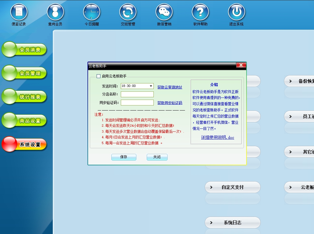 4. 支付和费用管理:软件支持会员费用的管理和支付,包括会员卡购买、续费、停卡等功能。能够方便地进行费用管理和收款操作。