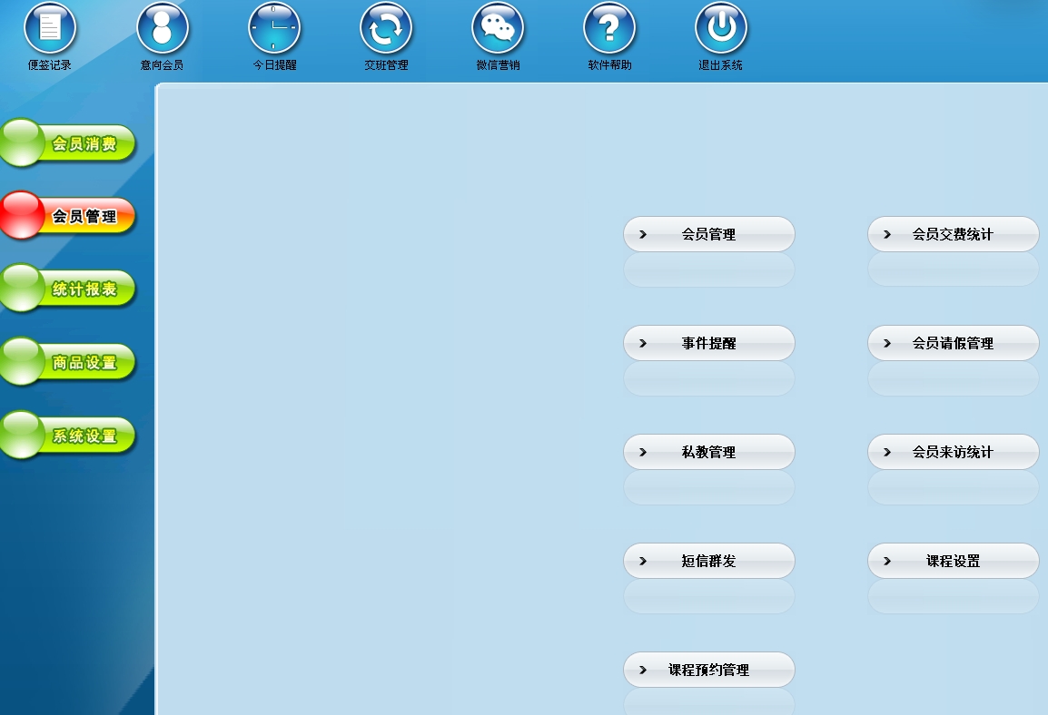 第十二:健身房软件可以对会员的基本信息、充值情况、事件提醒、会员请假、私教管理。