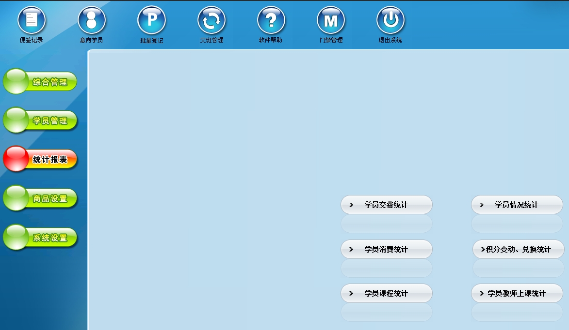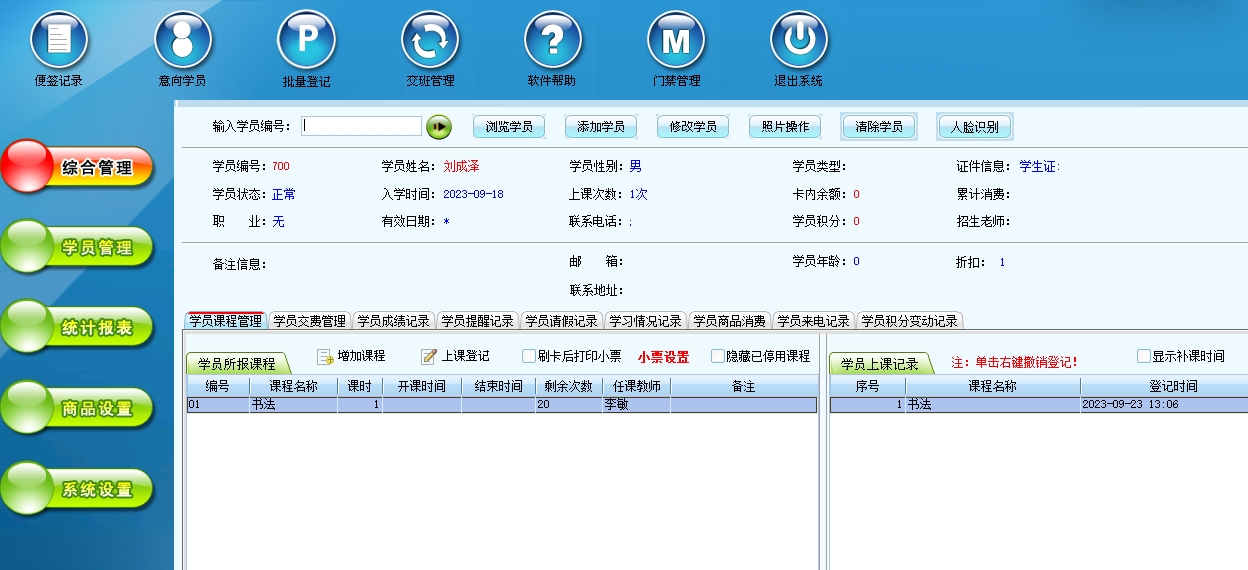 第十三:培训班软件可以对会员刷卡登记和会员消费店内商品进行管理。同时也可以管理兑换商品、充值、私教。