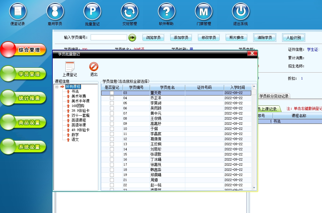 5:学员上课刷卡管理。