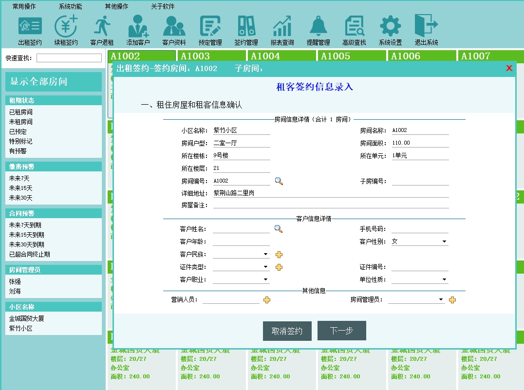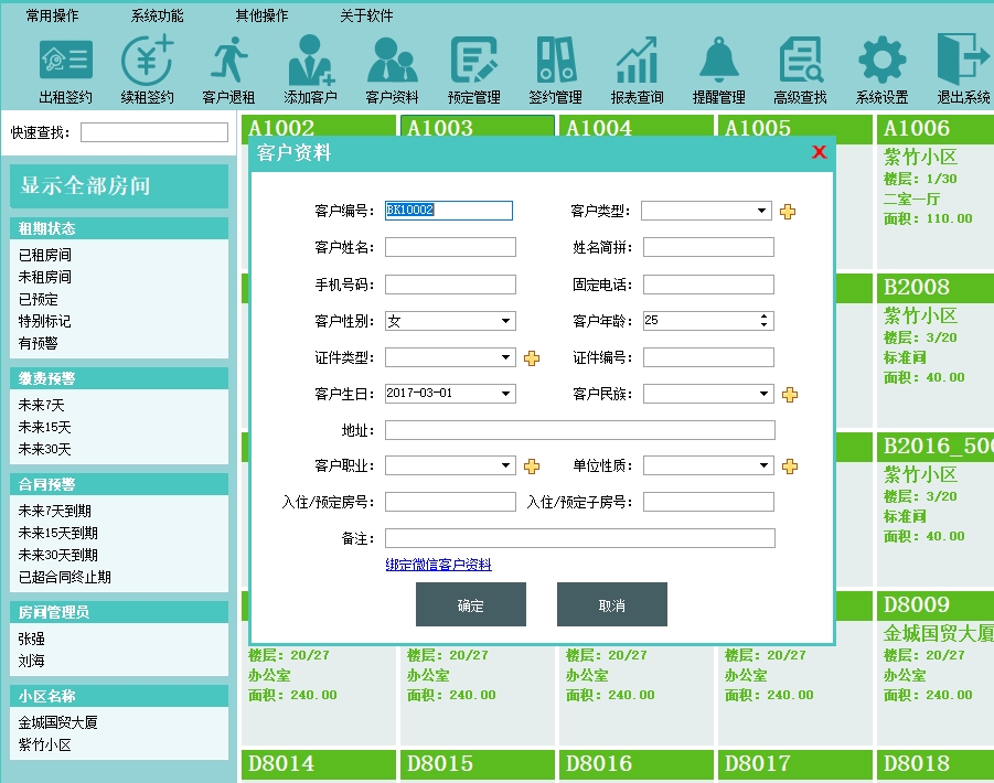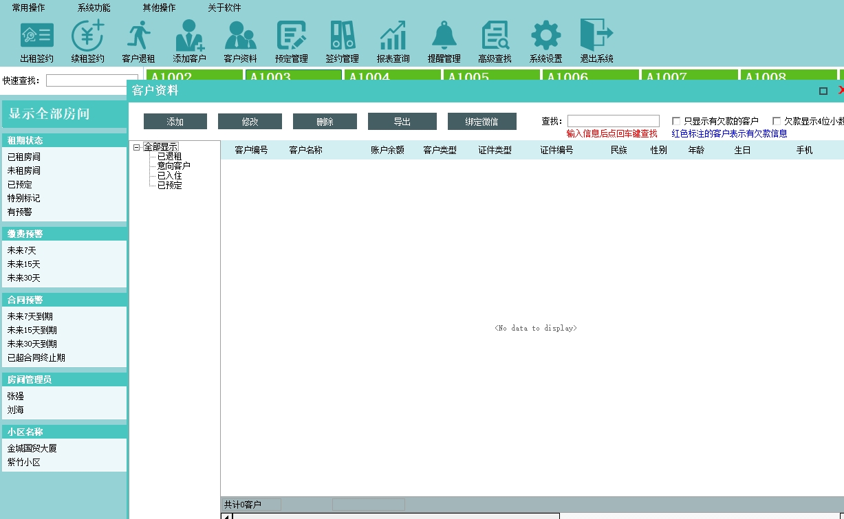第二:公寓出租软件管理客户资料信息,支持客户分类和客户账务明细查询。