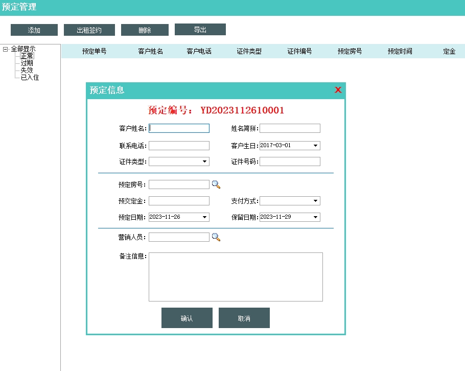 第三:公寓出租软件具有综合管理预定信息,支持分项修改预定信息和预定状态管理。