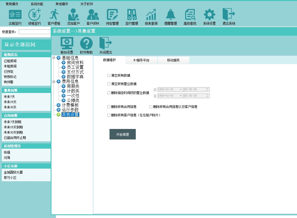 第十一:公寓出租软件可以管理各种基础数据信息,支持自定义添加各种基础数据以及变量设置。