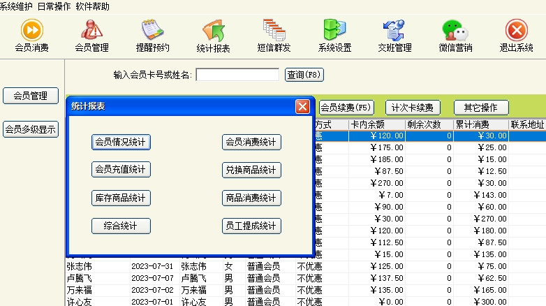 第十三:美发(门店)软件提供会员消费统计,充值统计和分店营业统计等功能。