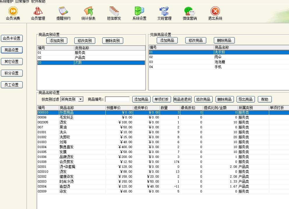 美萍美发店管理软件的功能包括以下几个方面: