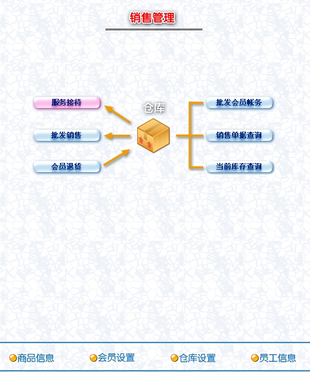 3、目标客户群:从事汽车后服务行业的店铺老板们,对库存商品管理要求不是太高,主要是对各类会员的业务管理。