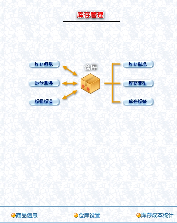 6.库存管理:包括库存之间商品调拔、商品报损溢等强大的库存盘点功能。
