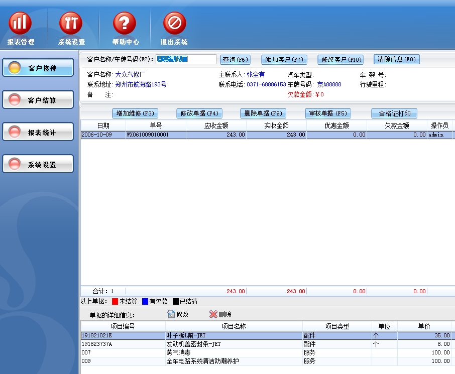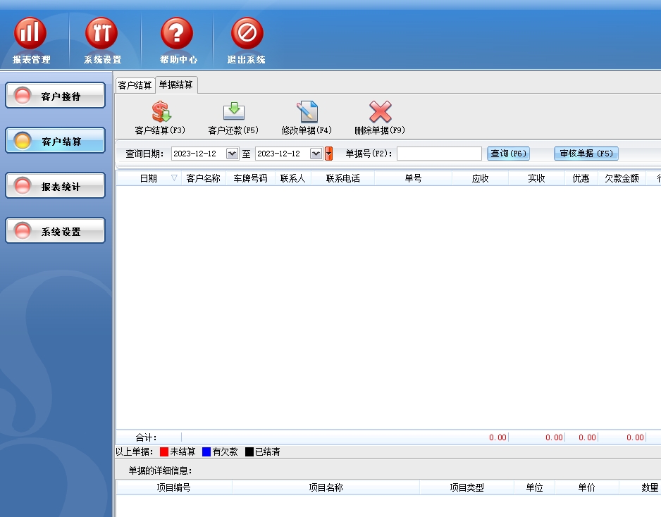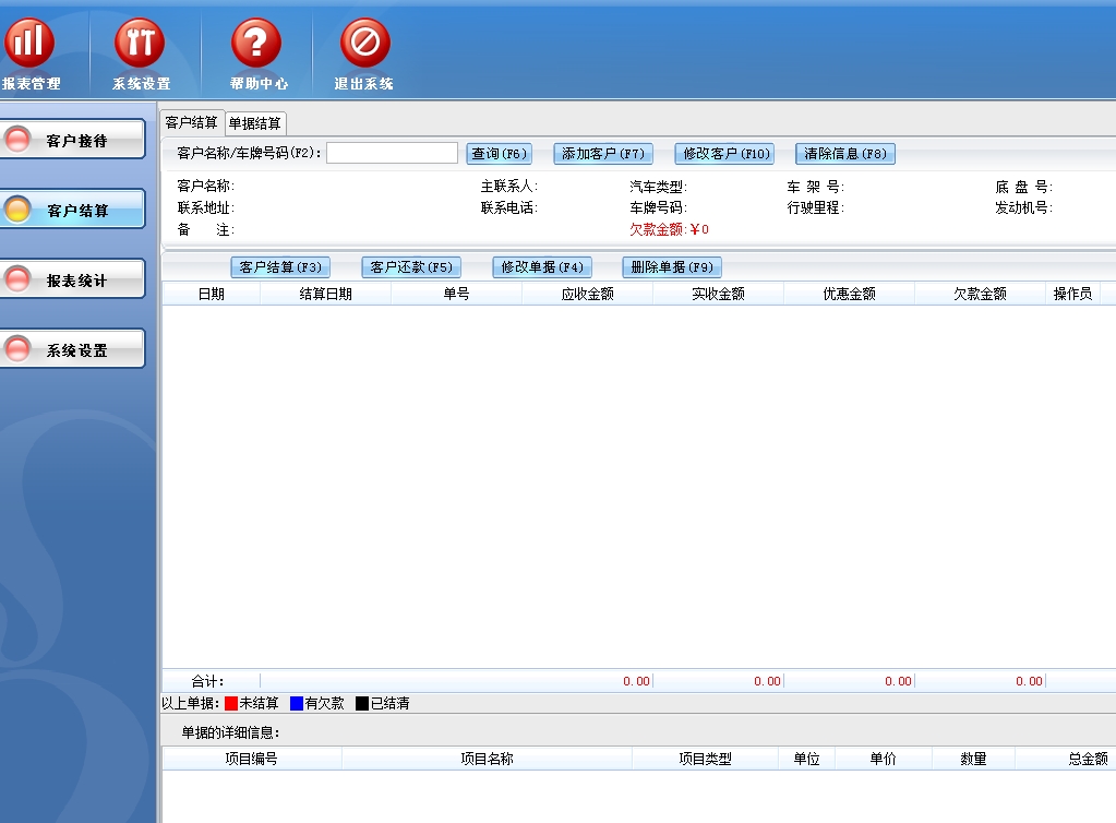 第二:汽车维修软件(汽修软件)可以客户结算,可能根据客户进行结算,也可以查询单据号的方式进行结算,完成对客户未结算单据维修项目调整,客户付款,对未结清单据进行批量还款以及对未结清尾款进行优惠等操作。
