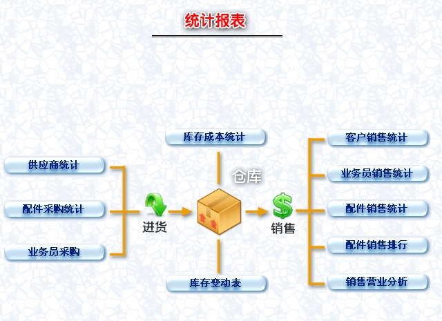 第五:汽车维修软件(汽修软件)具有强大的统计查询功能,让企业轻松实现计算机化管理,使库存不再是糊涂帐。